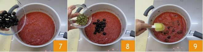 then add the black olives 7 and capers 8 and mix everything together.