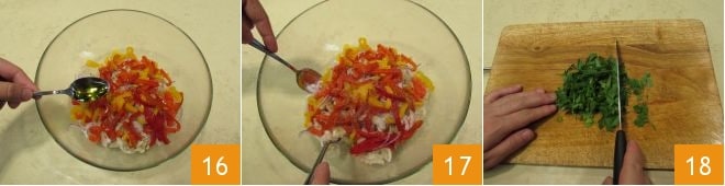 Adjust with oil, salt, and black pepper 16 and mix well 17. Chop the parsley 18 after washing and drying it,