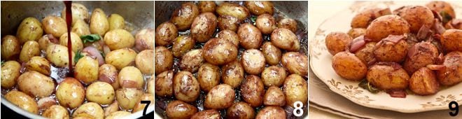 at this point, adjust with salt. Mix well to combine the ingredients and then add the remaining wine 7. Finish cooking the potatoes and complete with a nice grind of black pepper 8. Serve the new potatoes with red wine piping hot 9!