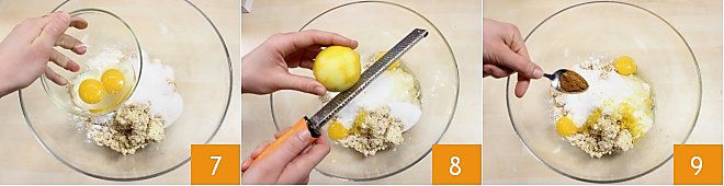 one whole egg and one yolk 7, the grated zest of a lemon 8, and a teaspoon of cinnamon 9.
