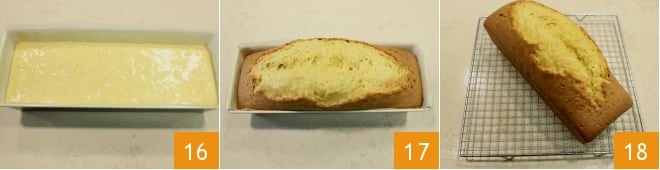 level it with a spatula 16 and bake it in a preheated static oven at 356°F for 70-75 minutes (if using a convection oven, 320°F for 60-65 minutes). Then take it out of the oven 17 and let it cool slightly, then remove it to cool completely on a wire rack 18 before serving.