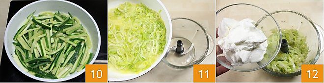 the zucchini should not become mushy but remain intact 10. When the leeks are cooked, place them in a blender 11 along with the yogurt 12