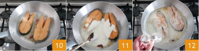 on both sides, for about 5 minutes in total 10. At this point, pour the sour cream into the pan 11 and season with a pinch of salt and pepper 12.