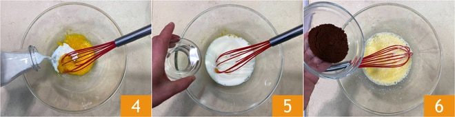Also add the milk 4 and seed oil 5, then mix again. Add the instant coffee 6 and stir to dissolve it evenly.
