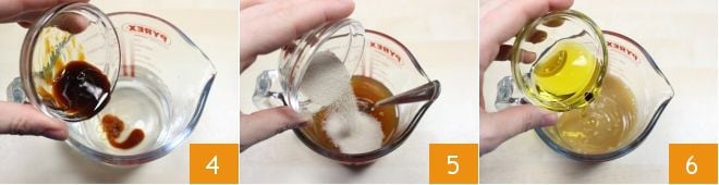 In the rest of the water, dissolve the malt 4 (or alternatively a teaspoon of sugar), dried yeast 5 (alternatively, you can use 12.5 g of fresh yeast), and finally the extra virgin olive oil 6, mixing well to combine all the ingredients. You can also prepare the bread dough with sourdough: replace the yeast with about 200 g of sourdough and increase the rising times by 3-4 hours.