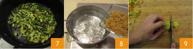 and cook for 7-8 minutes 7. Cook the pasta according to the package instructions 8. Move on to the zucchini flowers: clean them gently with a cloth, then cut off the base 9