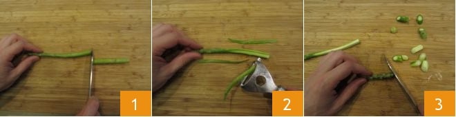 and halve the tips 4. Heat a dash of oil in a pan and add the asparagus 5. Season with salt and pepper, then deglaze with the lemon juice 6