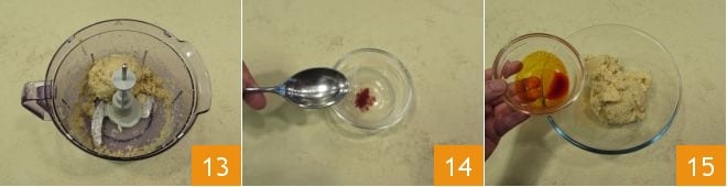 Blend the ingredients until you obtain a homogeneous mixture 13. Stop the mixer blades and transfer it to a large bowl. Then dissolve the saffron in a small bowl with a little hot water (the water ready for cooking the pasta will work perfectly) 14: add it to the obtained mixture 15.