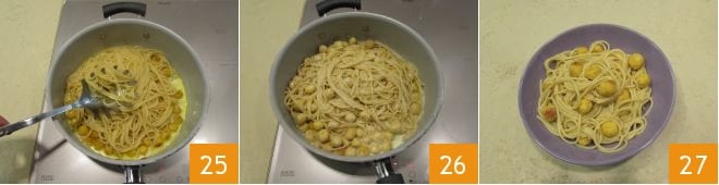 when they are al dente, drain them directly into the pan with the meatball sauce 25: mix the pasta well with the sauce 26, it will only take a few moments. Then turn off the heat and plate your pasta with fish meatballs to be enjoyed very hot 27!