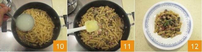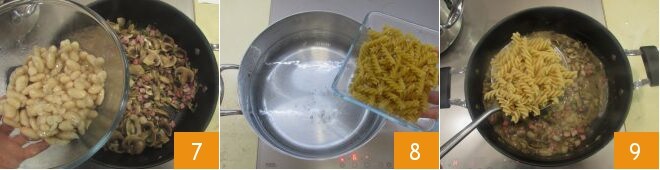 Extend with a ladle of cooking water 10 and sauté the pasta for a moment to blend the flavors 11. Serve your pasta with mushrooms and beans immediately 12.