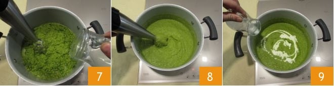 blend everything while gradually adding the reserved vegetable broth 7 until you achieve a smooth consistency and the desired density 8. Add the fresh cream 9