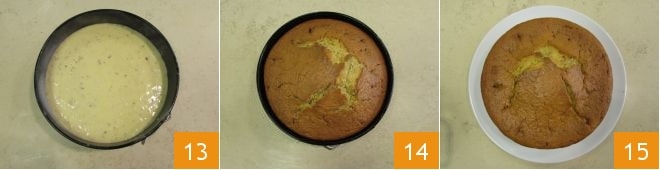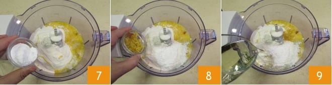 the baking powder 7, flavor with lemon zest 8, and finally add the liquids: the seed oil 9