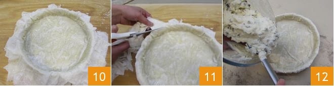 until you finish them 10. Trim the excess edge with scissors 11 and also pour the cream into the mold 12.
