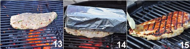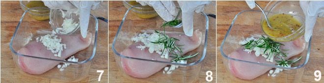 and the rosemary 8, then pour about half of the prepared marinade over it 9.