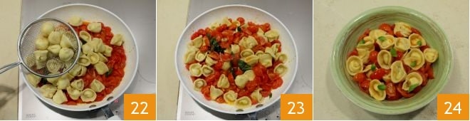 and transfer them into the pan with the sauce 22, stir for a few moments to flavor the ravioli 23 and serve your poor ravioli piping hot 24!