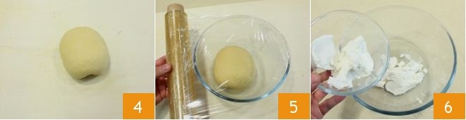 You should form a smooth and elastic dough ball 4. Place it in a bowl, cover with plastic wrap, and let it rest in a cool place for at least 30 minutes 5. Meanwhile, focus on the filling: in a bowl, add the fresh sheep and cow ricotta 6 which you have drained of whey overnight in the refrigerator (at least 12 hours).