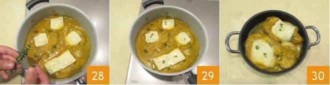 Sprinkle everything with thyme leaves 28, mix well and your pork chops with pumpkin cream and taleggio are ready to be served! 30