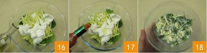 the apples, yogurt, olive oil 16, and a few drops of Tabasco 17. Stir to mix and set aside 18.