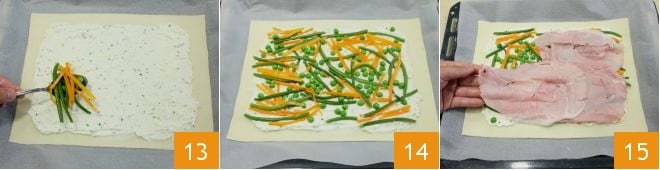 How to prepare Puff pastry with ham, ricotta, and vegetables