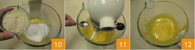 also add the almond flour 10 and work everything to incorporate the powders into the mixture. Finally, add the salt 11 and work again until the mixture is smooth and uniform 12.