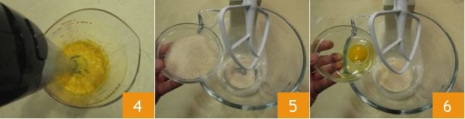 and blend with an immersion blender until you obtain a smooth cream 4. Now pour the brown sugar into the bowl of a stand mixer with a paddle attachment 5, add the egg 6, and work at low speed until the mixture is light and fluffy.