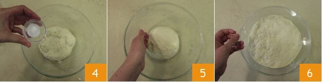 Add the salt 4 and then continue kneading for a few more minutes 5. Transfer the dough to a greased bowl and cover with plastic wrap; let it rise in a warm place for a couple of hours or until it has doubled in volume 6.