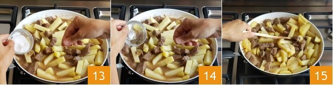 Season with salt 13 and pepper 14, mix 15 and continue cooking for about 10 minutes.