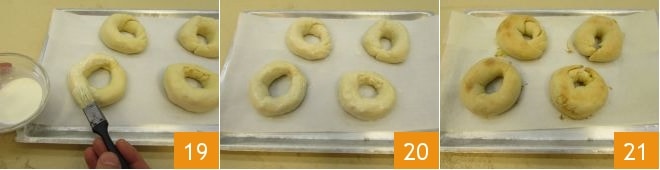 Place the doughnuts on a baking sheet lined with parchment paper and brush the surface with some fresh cream 19. Then 20 bake in a preheated static oven at 375°F for about 25 minutes in the middle rack. Once they are nicely golden, take them out 21 and enjoy them while hot!