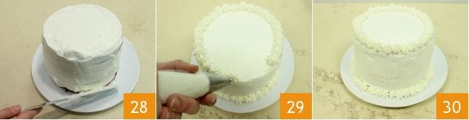 Coat the entire perimeter of the cake with the remaining yogurt cream 28 and, with the yogurt cream, decorate with tufts or other motifs of your choice 29. The rainbow cake is ready: you can place it in the refrigerator to set until it's time to serve 30.