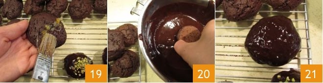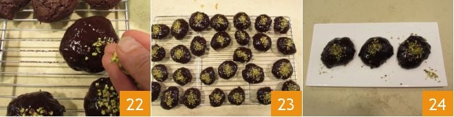 Cover them with chopped pistachios 22, let the glaze dry for about 2 hours 23, then enjoy your Naples Copper Cookies 24.