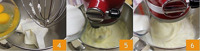 You can then proceed to prepare the cream: place the cheese and the two eggs in a stand mixer 4, turn on the beaters to mix the ingredients and then add the granulated sugar 5. If you do not have a stand mixer, you can work the ingredients in a large bowl with an electric mixer or a hand whisk. Add the vanilla extract and also incorporate the pouring fresh cream 6 while continuing to mix.