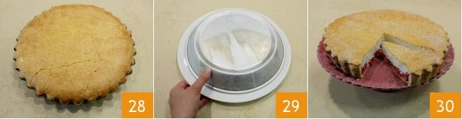 Once cooked, remove it from the oven and let it cool 28, then turn it over to form it 29 and serve the ricotta and sour cherry tart for a delicious end of meal 30!