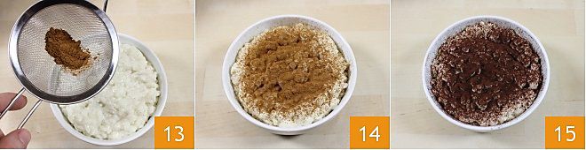 and using a sieve 13 dust each bowl of rice pudding with cinnamon powder 14 or cocoa 15 as you prefer, and in the same way, you can decide whether to enjoy the rice pudding just prepared, warm, or even cold!