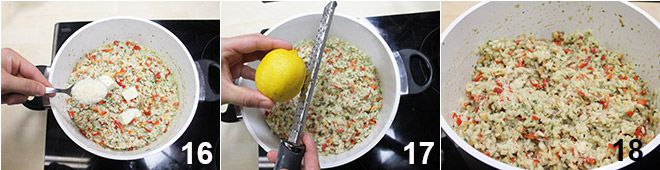 As soon as the rice has reached the desired cooking, turn off the heat; cream with butter, Parmigiano Reggiano 16, and the zest of half a lemon 17. Your risotto with clams is ready, serve it and enjoy immediately 18.