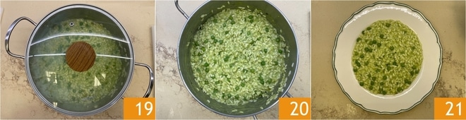 Cover with a lid and let rest for 2 minutes 19. The risotto with peas and mint is ready 20, serve it hot 21!