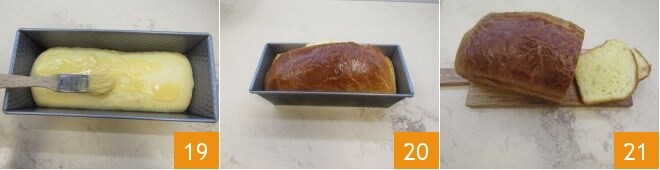 After this time, brush the surface with the egg yolk beaten with the cream 19 and bake in a static preheated oven at 340°F for 35 minutes. Once cooked, take out your savory brioche 20 and let it cool before serving 21.