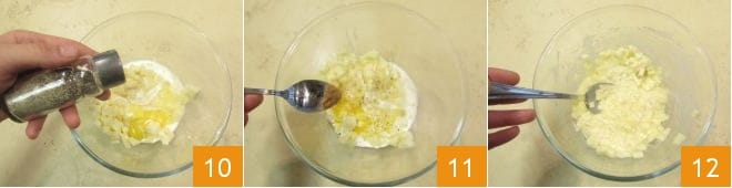 Salt and pepper 10 and add a pinch of nutmeg 11. Mix to combine everything well 12 and set aside.
