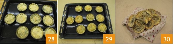Place them on a baking sheet 28 and bake in a preheated static oven at 356°F for about 30 minutes. When they are golden brown, remove the savory tartlets with agretti from the oven 29 and serve them still hot 30!