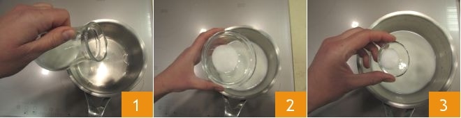 To prepare the savory vegetarian éclairs, start with the choux pastry. In a saucepan, heat water, milk 1, sugar 2, salt 3