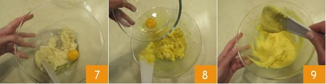 Transfer the mixture to a bowl and then add the eggs, one at a time, while stirring with the spatula to incorporate them gradually 7. Incorporate slowly, it will take a bit of patience 8. When the dough is smooth and consistent 9,