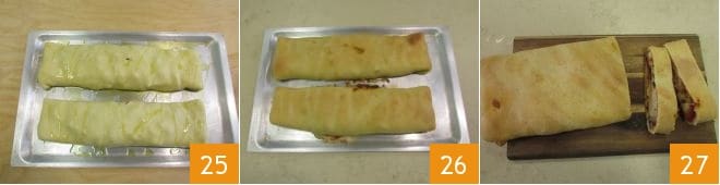 and drizzle them with oil 25. Bake them in a preheated static oven at 428°F for 25 minutes. Once cooked, remove from the oven 26 and let them cool slightly before enjoying your scaccia 27!