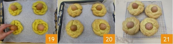 and place an egg in the center 19. Bake in a preheated static oven at 356°F for 50-55 minutes (you can try in a fan oven at 320°F for about 40-45 minutes) 20, if the shortcrust pastry darkens too much, cover with a sheet of aluminum foil. Once baked, transfer the scarcelle to a wire rack and let them cool 21.