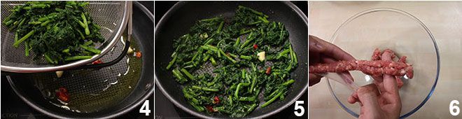 Once cooked, drain the broccoli rabe well and sauté them for a few seconds in a pan with oil, garlic, and chili pepper to flavor them (4-5), then adjust salt and set them aside. Crumble the sausage in a bowl 6