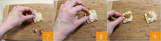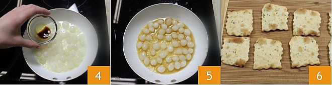 while the sugar melts, enhance the onions by adding the soy sauce 4. Let it cook over moderate heat for about 20 minutes, or until the onions are well caramelized (stirring occasionally) 5. At this point, you are ready to assemble your finger food: take the olive pastries 6