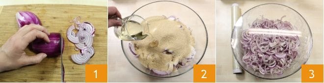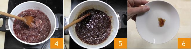 After this time, transfer the mixture to a saucepan and boil over very low heat for about 25-30 minutes until it thickens 4. After 30 minutes, your jam should be ready 5: take a little of it with a teaspoon and let a drop fall onto a plate 6: if it remains compact, then your preserve is ready. If the drop is too liquid, continue cooking for the necessary time, stirring frequently. To best prepare the Tropea onion jam and understand how and how long to store it, consult the recipe Tropea Onion Jam.