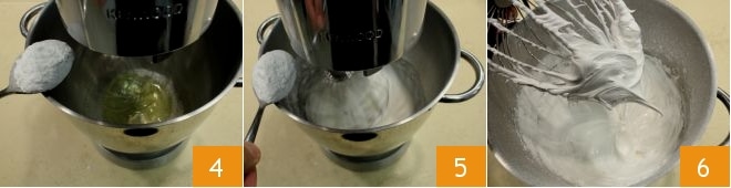 add it one tablespoon at a time to the egg whites 4. Continue using the stand mixer 5 until you get a white and fluffy meringue 6.