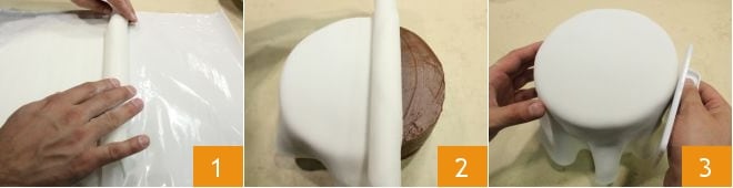 Take the already rolled sugar paste, unroll it 1 and How to cover a cake with fondant the larger cake with the help of a rolling pin 2. Smooth the surface and sides with a smoother to adhere the sugar paste well and avoid folds 3,