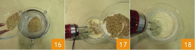 and the hazelnut flour 16. Gradually add them to the mixture 17 until well combined 18.