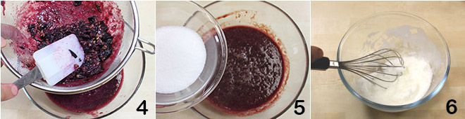 Strain the strawberry grape mixture to remove all the seeds 4 using a sieve and spatula, collecting it in a bowl, then add the granulated sugar and mix well until completely dissolved 5. At this point, cover the bowl with plastic wrap and place it in the freezer for about half an hour, so that the mixture becomes very cold but not hard (alternatively, you can also cool it in the refrigerator for an hour). Once the necessary time has passed, whisk the egg white until very stiff 6.