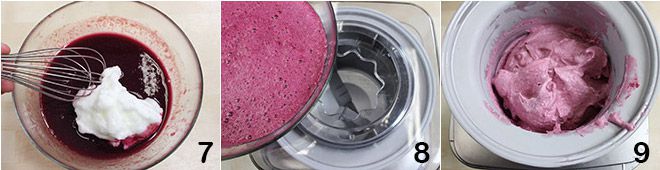 and add it to the strawberry grape mixture, being careful not to deflate it 7; mix well with a whisk until homogeneous. Pour everything into the ice cream maker 8 and let it churn for at least 35-40 minutes, or until you get a creamy sorbet 9. Serve the strawberry grape sorbet well chilled.